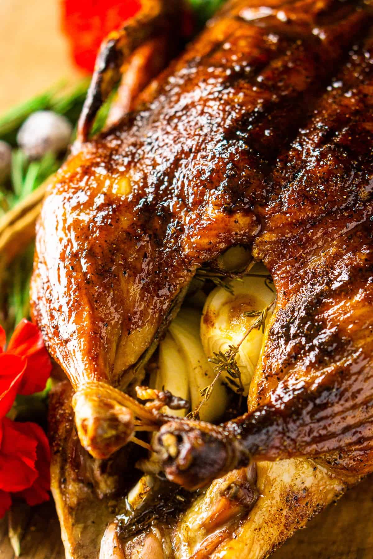 The first step involves patting the duck dry to ensure a crispy skin. This is crucial because excess moisture can prevent the skin from browning properly. Once the duck is dry, a simple spice rub is applied to the skin, infusing it with warm, aromatic flavors. The spices used in this recipe—garlic powder, onion powder, cinnamon, allspice, salt, and black pepper—create a festive blend that enhances the natural taste of the duck without overwhelming it.
