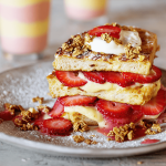 The Creamy Bacon, Chicken, and Broccoli Strata is a creative reimagining of traditional dishes like pasta bakes, croque monsieur, and even bread pudding. Instead of relying on pasta, this recipe uses bread as the base, topped with a rich béchamel sauce, panko, and parmesan cheese. This combination creates a delightful contrast between the crunchy, golden crust and the creamy, savory interior. The result is a dish that feels indulgent yet surprisingly light, making it a perfect fit for any meal.