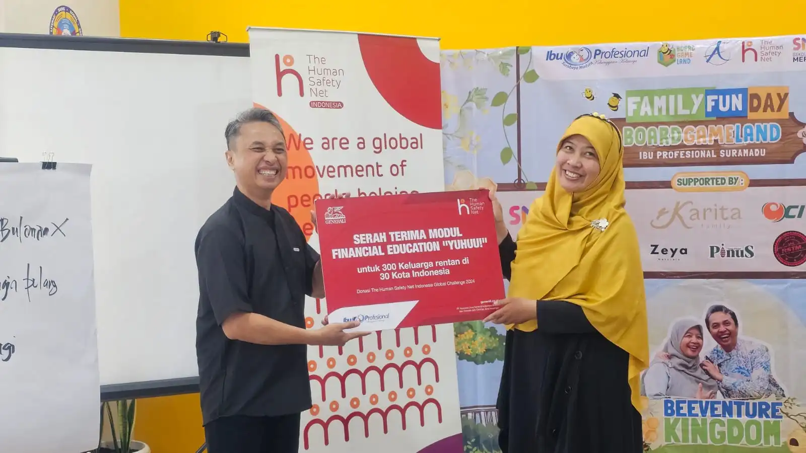 Sebagai bentuk dukungan terhadap keberlanjutan kegiatan keluarga, dilakukan penyerahan simbolis modul board game dari The Human Safety Net kepada Ibu Profesional Surabaya Madura, agar dapat dimanfaatkan oleh keluarga-keluarga di Surabaya, Madura, dan sekitarnya.