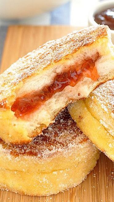 For those looking to recreate this delightful breakfast, the process is straightforward. Start by cutting slices of white sandwich bread into rounds, either using a large tinned tomato can or a knife if necessary. Spread a layer of jam in the center, ensuring there’s enough space around the edges to prevent it from oozing out during cooking. Dip the sandwiches into a mixture of beaten egg and milk, then roll them in caster sugar before frying in a non-stick pan until golden brown. Finally, dust the hot pieces with more sugar to create that irresistible sugary coating.