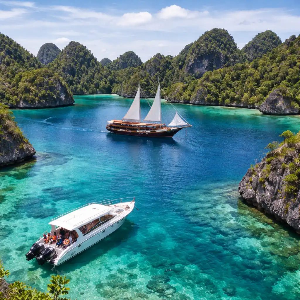 mencapai spot-spot ikonik seperti Piaynemo, Wayag, dan Teluk Kabui