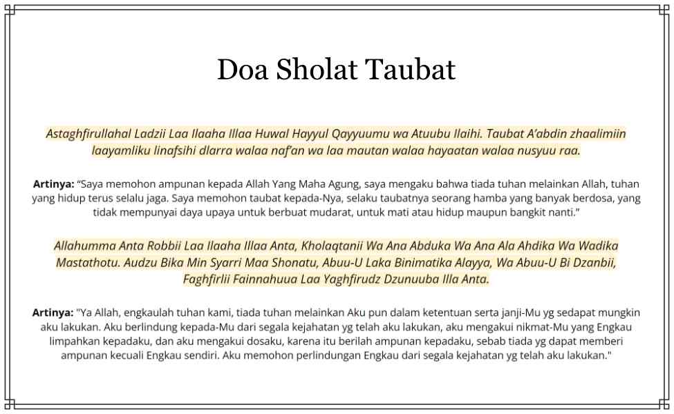 - Membaca Doa Taubat: Setelah selesai sholat, bacalah doa taubat dengan penuh kesadaran dan kerendahan hati. Doa ini bisa berupa permohonan pengampunan, kesadaran akan dosa, dan keinginan untuk berubah.
